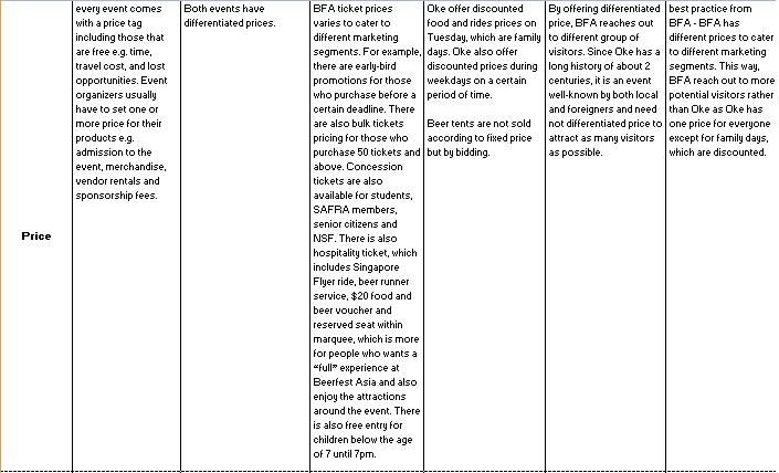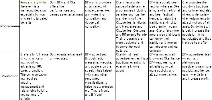 My friend and I attending Beer Festival Asia 2009 Wrist tags Every visitors has a wrist tag to identify that they are visitors of BeerFest. This way, there are no arguments whether they have paid the ticket to attend the event. The Singapore Flyer is the official venue for Beer Festival Asia Sponsorship acknowledgment board This board is placed clearly at the entrance of the event to acknowledge the official sponsors of Beer Festival Asia. This way, sponsors would have their publicity increased. Direction signage There were clear signage to inform visitors where the event is being held. Outdoor screen  There is an outdoor screen which shows the performance inside the BeerFest tent. This way, visitors do not need to go into the tent to watch the performance but instead, stay at the outside to watch the performance. Air cooler fans  There is a clear danger sign to warn visitors not to get too close to the machines as it may be a danger to them. There are such machines placed within the tent to cool the area as it can get hot inside the tent. Cleaners  There are cleaners stationed both inside and outside the tent to maintain the cleanliness of the area. Smoking area Smoking is allowed outside the tent. Portaloos  There is a long stretch of toilet cubicles. As beer drinkers have the need to pee more often, this long row of toilet cubicles ensure that no one would have to queue too long to relieve their bladder and no one would have to pee on the grass. This also help maintain the hygiene standard. Free breath test There are free breath tests for those who drive so that they can check their alcohol level to see if they are fit for driving. This promotes anti drink driving and ensure safety of visitors. Sale of merchandise  There were sale of merchandises to visitors. This promotes economic benefits. Sale of food  There were sale of food for hungry visitors. This promotes economic benefits and allow visitors to try some of Singapore's food eg kebab. "Drop your survey forms here to enter into our lucky draw" There are survey forms for the visitors to fill so that the BeerFest management are able to understand what are the visitor's response towards BeerFest and areas they can improve on. The management also knows that some visitors are not willing to fill up the form, hence they created a catch whereby they are entitled to win the lucky draw if they fill up the form. Game stations Once visitors leave the event site, visitors would come upon the game station where they can play games. It is a bonus point to the event as some visitors may not like the crowd and they can come here to play game and have some peace. The game station was not crowded as few people seem to know about it. How events can increase economic benefits: Tourists or visitors would spend in areas nearby the event, in this case, the Popeyes restaurant. There is an increase in consumers as compared with usual days that has no events going on. My friend and I interviewed some tourists are the event. Their comment were that Beer Festival was quite a let-down as the "VIP" privilege they were promised was not delivered and they wished that the management had better prepared it. They were quite disappointed by the prices of the beers as the pamphlet stated price "as low as $3" but only a handful of them among hundreds of beer were of that price and they felt cheated.